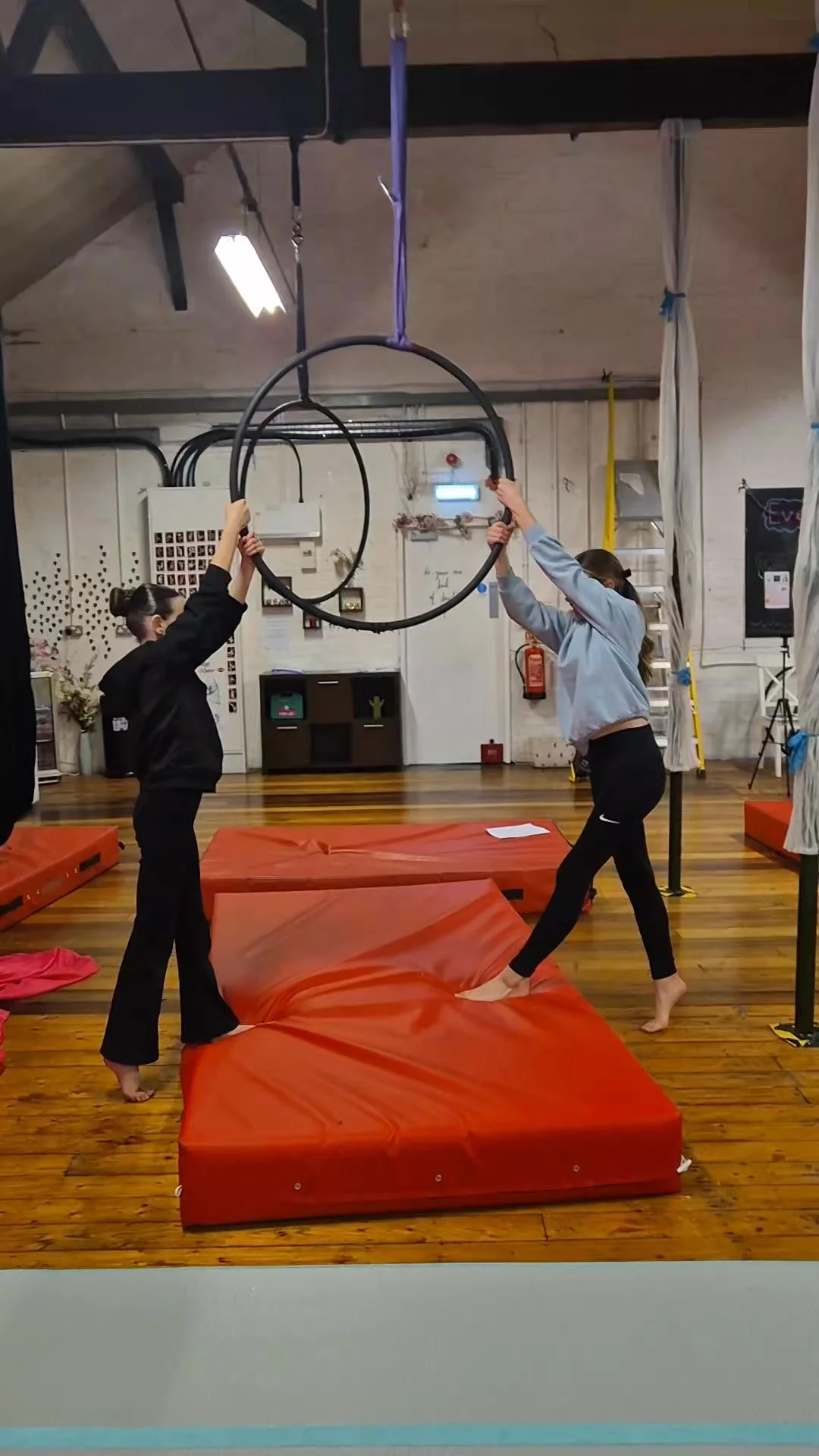 Our mini aerialists are working on a hoop doubles combo in class. At Pole2Pole, we have multiple aerial Kids classes available. Keep your little ones entertained while trying something new! 🤸♀️🤸♂️ #aerialists #kidsclasses #tamworthpolestudio