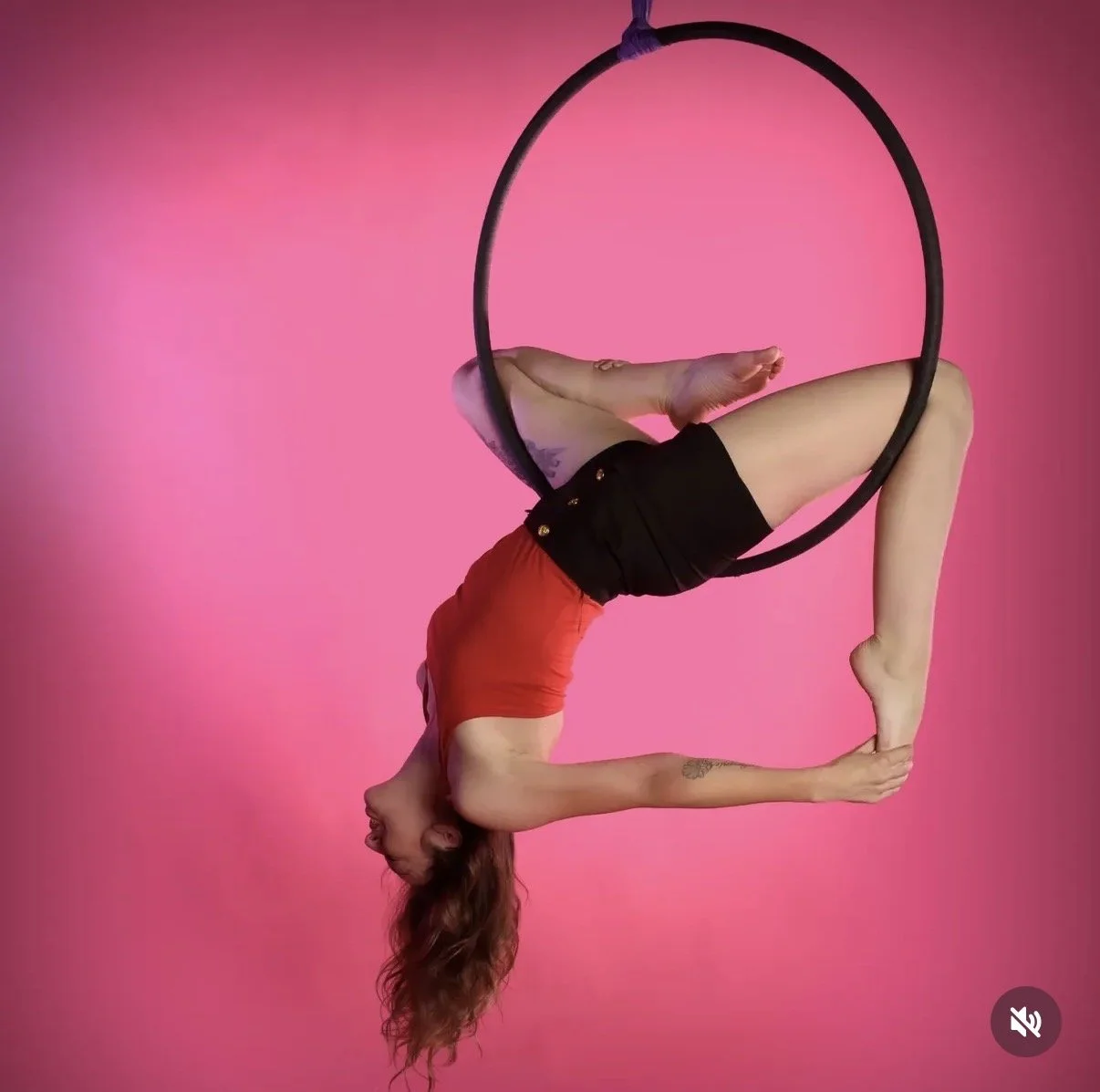 Amber fell in love with aerial when she started with us as a student and decided to put her skills to the test becoming an instructor! She has been teaching Aerial Hoop & Kids since 2025 and loves using all equipment especially the trapeze.
